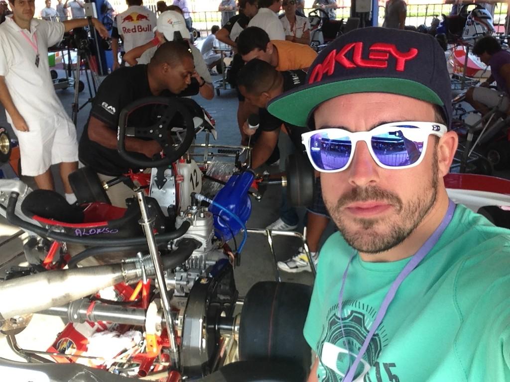 Estou adorando ver Alonso aqui, no Brasil, se divertindo! Ele quase nunca participa de coisas assim, exceto na Espanha ou em Oviedo.
