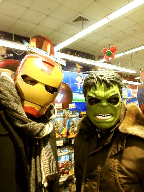 Alonso e Alberto brincando de Super Heróis!!! Mas é fácil adivinhar qual deles é Alonso: Iron Man ou Hulk!!?!?! hahaha